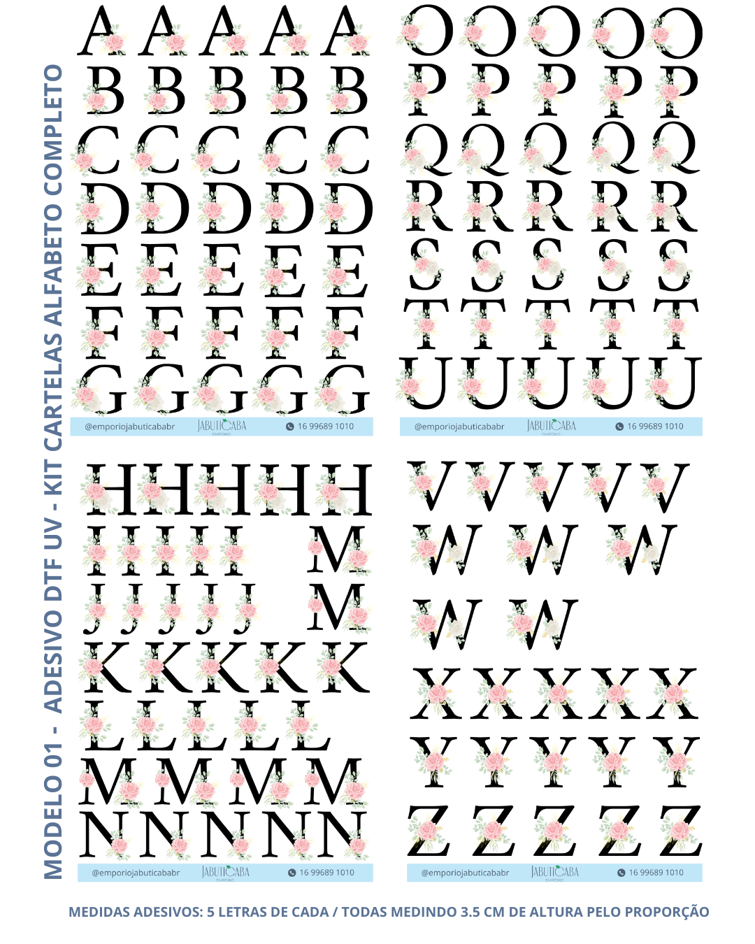 KIT ALFABETO COMPLETO - COM 5 LETRAS DE CADA DO ALFABETO QUANTIDADE DE CARTELAS ESPECIFICADOS EM CADA FOTO DO ITEM