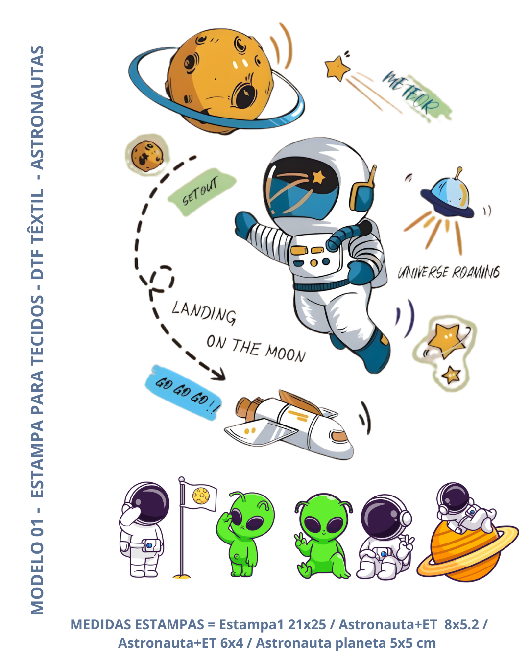 Estampa DTF Têxtil para tecidos - Coleção Astronautas